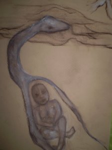 I appreciate the modicum of technical skill I mustered in drawing the child. The snake looks thick and clay-like.