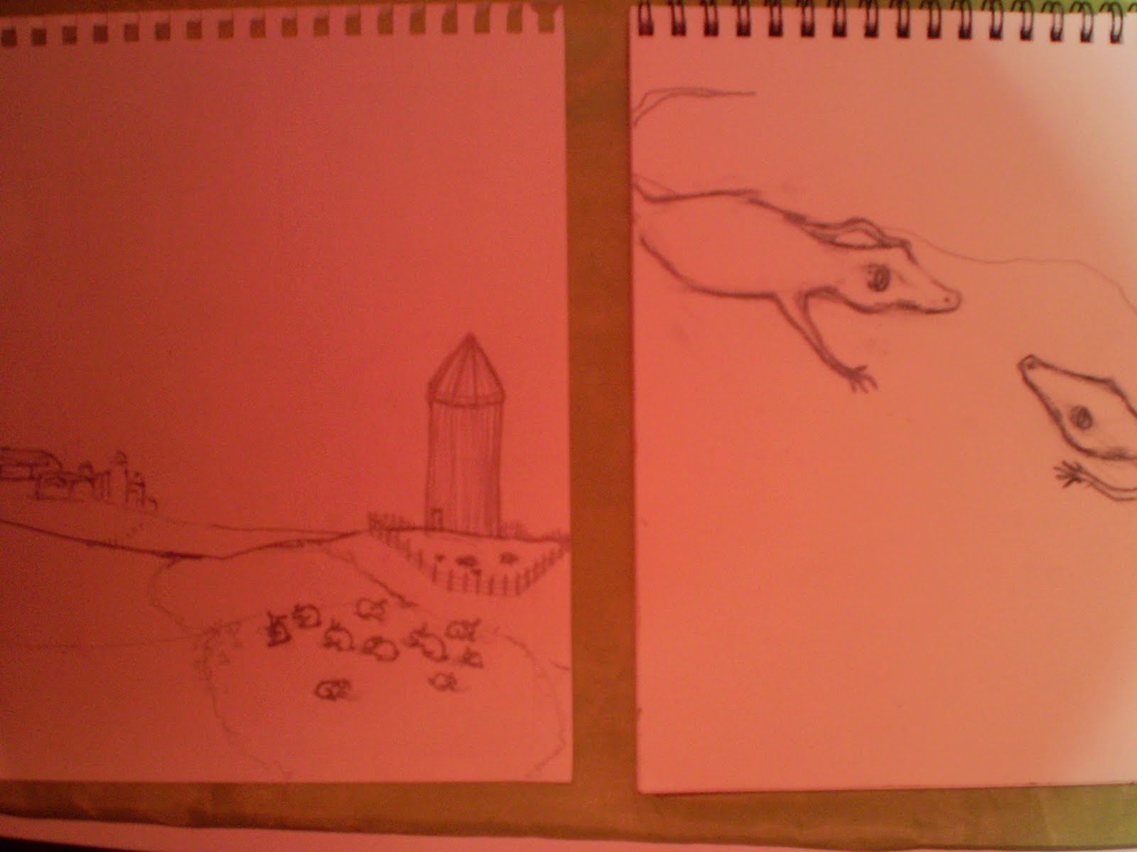 Of course, I suppose I could come with a conceptual piece about not knowing any image intimately, or I could make up a new curve. I don’t think I’m that kind of artist though. I like to draw things as they are – or as close as possible. That doesn’t mean that everything I draw actually exists. I tend to do a fair amount of daydreaming – and turtles don’t ever wear hats. The lizard-ish things I drew out of my daily obligation to draw (I was sitting in a car, in the rain, waiting for the children to finish their fatherly lunch. The dogs’ breath was hideous, the rain kept hitting my arm. I wanted to sleep. But, I drew instead.) are, perhaps, an unseen fear of an unknown child. I think they may be part of the myth. I need to paint. The whirlwind of energy to lay it down with brush and pigment segued into a whirlwind of energy to restructure my house. The living room is upstairs now. I excavated the downstairs closet, pulling bag after bag of fabric scraps out from under bag after bag of paper towel tubes and birthday party decorations. My son turns seven day after tomorrow. He banished me from his unwrapping of an early gift. A set of Star Wars “blasters” – our euphemism for anything gun-like. He was fearful of my disapproval of the gift. Little guy. I need to chill on my leftist-liberal dogma. Let the boy be happy – unhesitatingly thrilled – by a gift of plastic blasters, made in China. He worries to much. I taught him how.