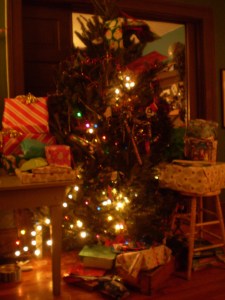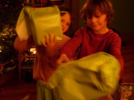 The story ends with the three of us delighting in odor-free presents at 5:30 in the morning. The world still dark and sleeping, the house smelling of coffee and biscuits. Celebration: that my Leo, factual boy that he is, STILL believes in Santa. That my children love eachother and offered carefully wrapped gifts to one another. That all the inside/outside cats are inside. That I have a perfect excuse to hang thousands of colored lights from our home. That we have a home in which we can fit a really, big tree that still smells alive. (That we have a house at all!)