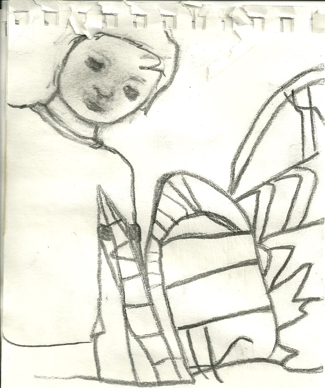 (Leo drew so hard, his lines were in the paper. I drew over them, and then I drew him. Sorta.)