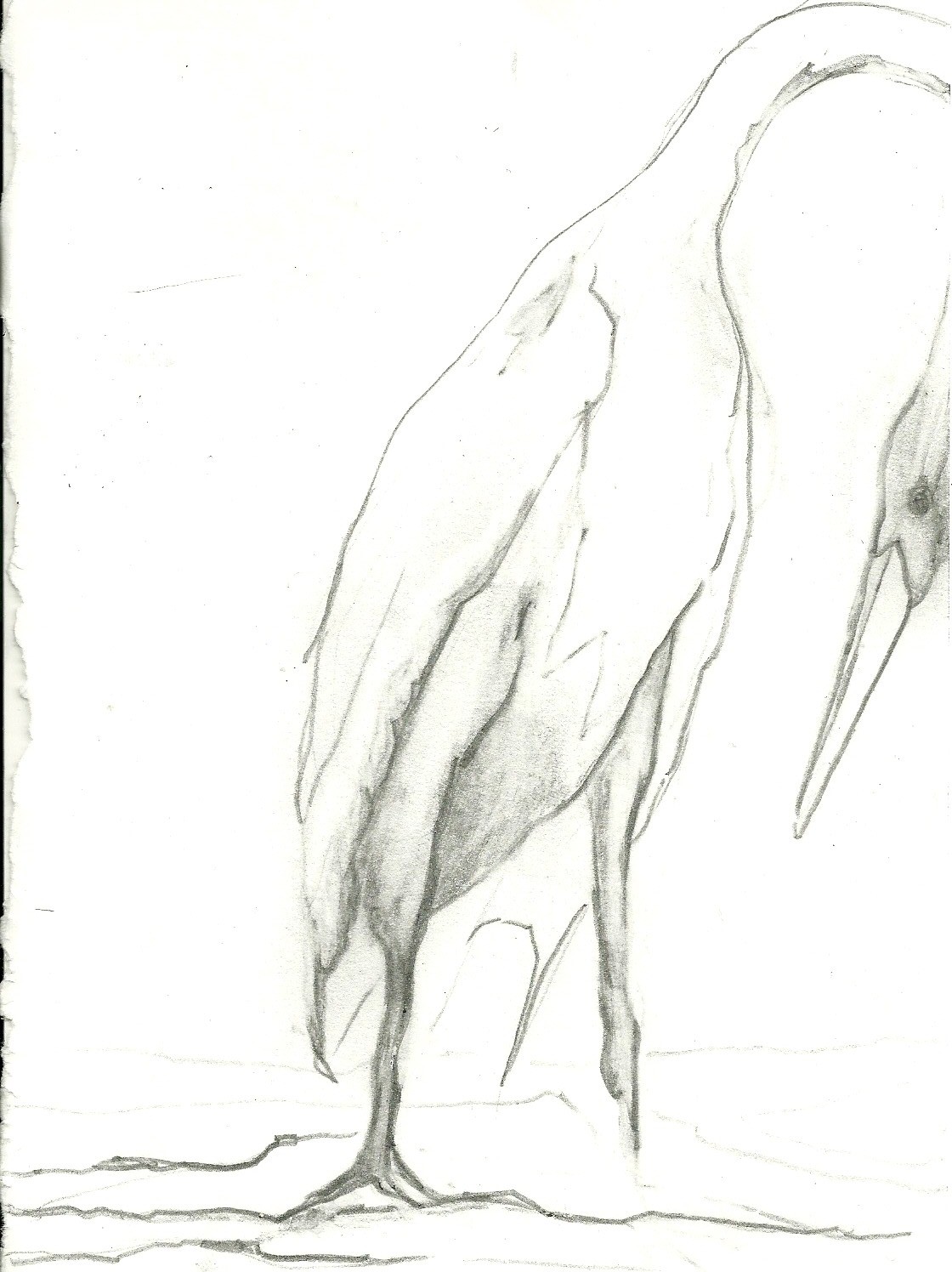 CURRENT: The children and I drew for a while yesterday? Today? The cold makes it all run together. It was yesterday. Today, I drew a canoe. Empty, unshaded. I thought if I drew a canoe I might remember that I have one and begin making plans for its springtime usage. Canoeing under warm sun is a wonderful thing to consider right now. It is so, so, so cold. Even in the house, cold. Though not so cold as outside, I must remind myself. This is a heron I drew yesterday. The south Georgia coast part of me considers itself to be like a heron. It is the part of me that pays attention gracefully.