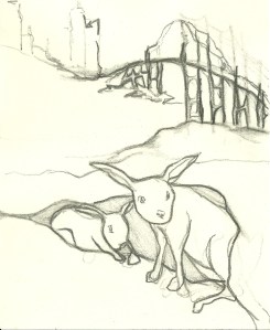 What do I do with a picture of a rabbit and a bridge? Like this one, drawn while in the back corner of a classroom, observing a lesson on sexually transmitted infections and contraceptive technology. Really. I listen better when I am drawing.