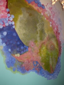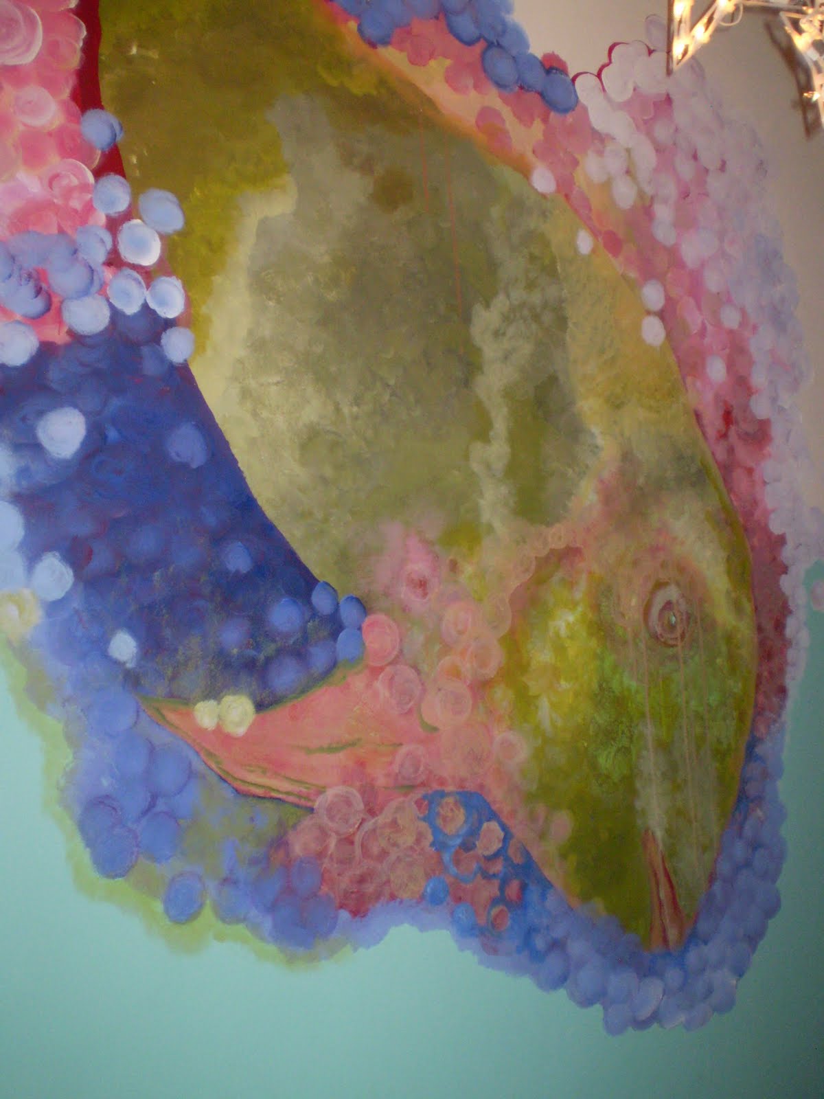 The fish is about six feet in length. The bubbles span an area about ten feet wide. I've only worked on it for about six hours…I'm quick like that."hints of whale" : my favorite phrase this week.