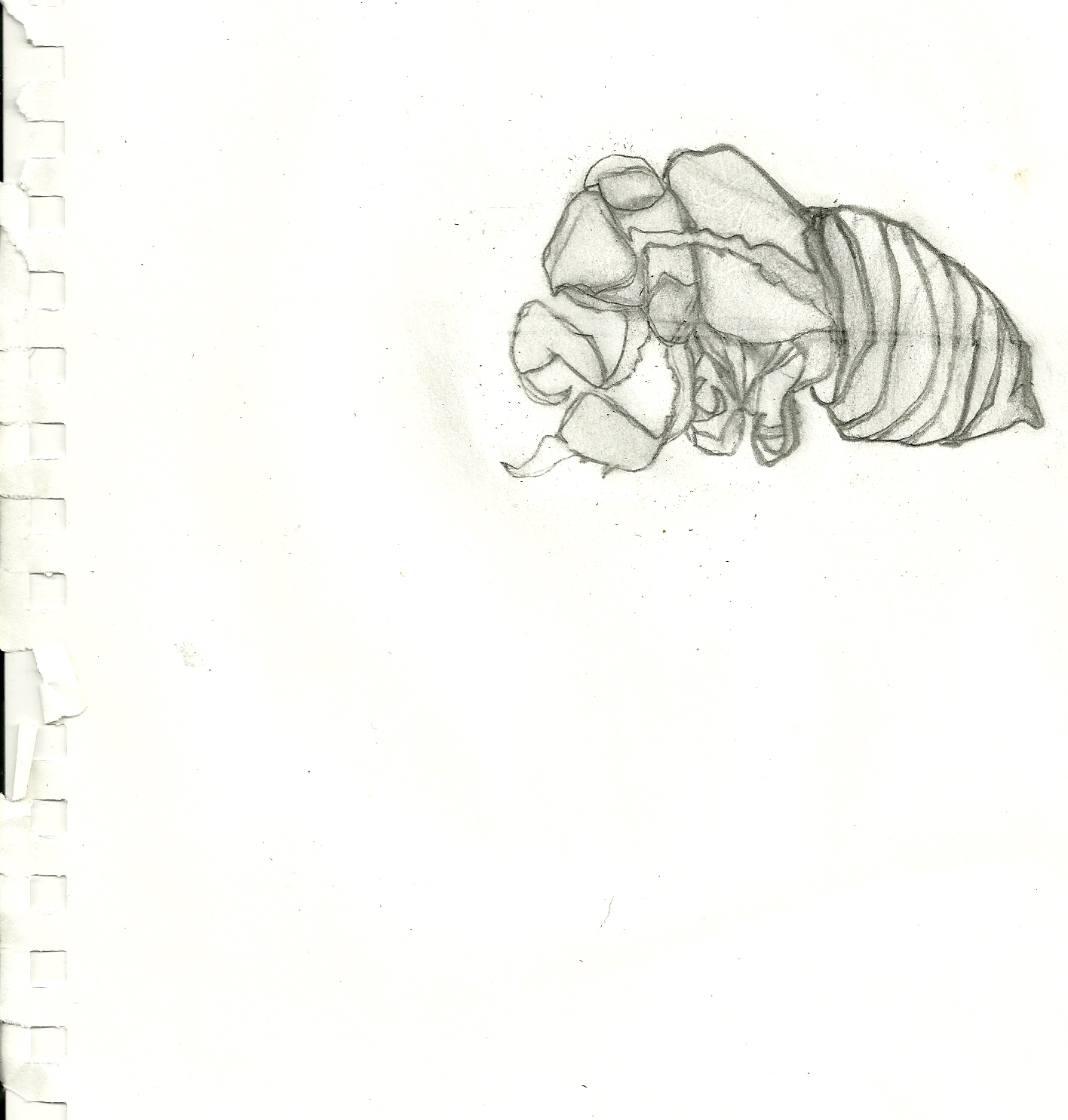 Hollow is hard to draw. Still, I am surprised by the relative ease with which I am able to sketch the crispy old skin of a bug. Specifically, relative to the difficulties I encounter in trying to draw a simple human face.
