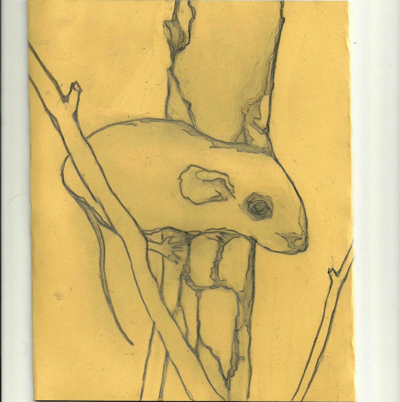 This little deer mouse was fun to draw. It was a pretty dull drawing (and, content-wise, it still is) until I realized that I had been looking at bark for my whole dang life and that I could probably draw it. I could detail the drawing more, but that’d just make it look like high-school art. Terrified of negative space.
