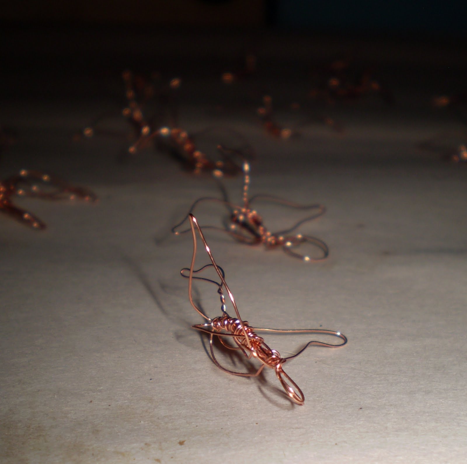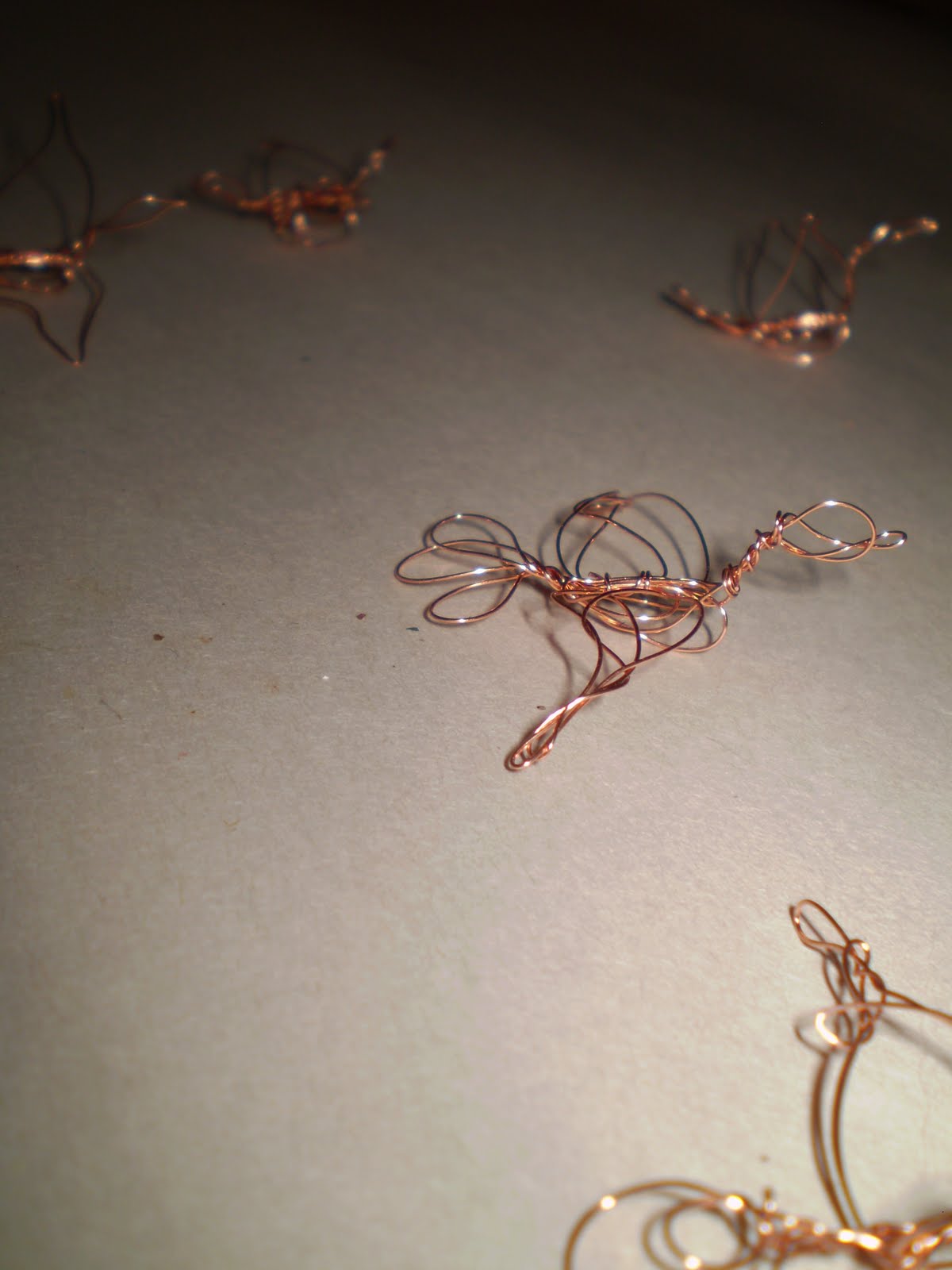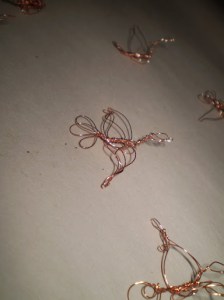 I am making these tiny-ish birds out of copper wire. They are about an 1 -1.5 inches long.