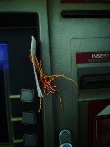 I will note the location of the presents I leave and instruct (by words on the small folded tags) the finder of the bird to keep it or give it away, but to please let me know, via blog comment what they did with their small gift and what they happened to think when they saw that the small tangle of wire was actually a bird in flight.