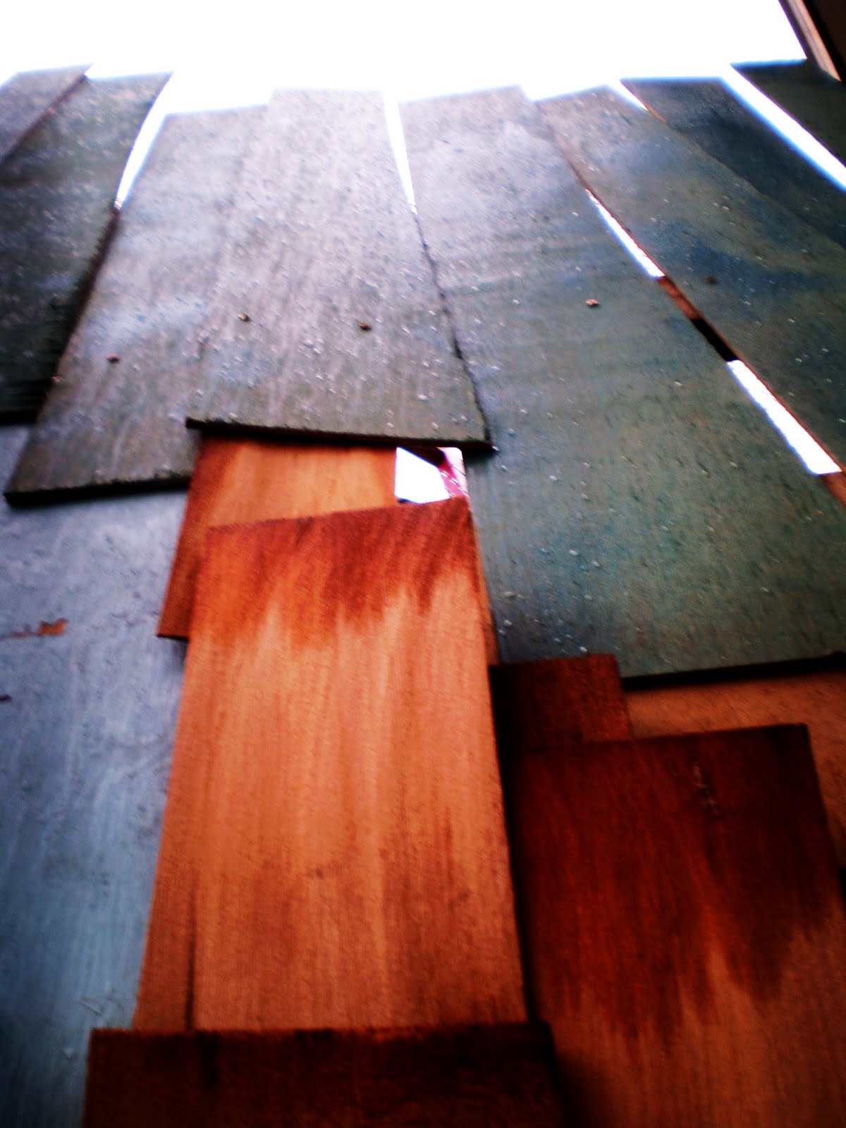 It is cedar shake, cypress, pine – lots of pine! – hardware cloth and fencing wire, copper sheeting and coil (purchased coil) had sheeting already, long story.