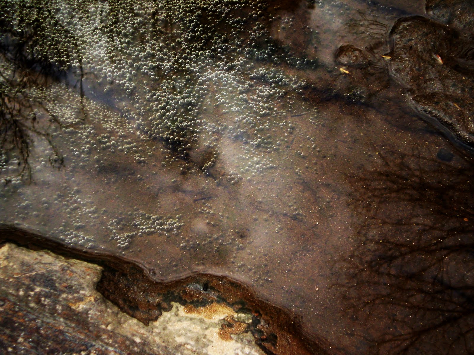 I hope other people noticed these “nests” of tiny bubbles, caught below the surface of the water.
