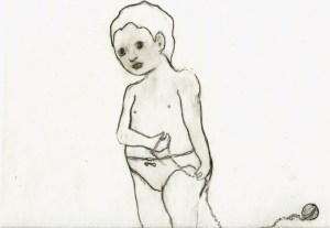 played badminton with a pretty cool 3-year old, rode an awesome scooter, held a crying-angry child as tightly as I could, noticed how dark he is around the eyes lately and then carried the same child to his father’s house, hurt back, went to work. Made doghouses out of old cereal boxes, explained to anxious mothers of toddlers that, really, it’s okay if she just wants to cut up the pink paper, she doesn’t have to actually make anything. Tore down crepe paper ribbons from exposed pipes (a fabulous ball of primary colors it was! I wish I had taken a picture.) poured a hundred pounds of sand into a bucket, drew a picture of eight young chickens, mended my sweater, swept no fewer than five times, did one load of wash, cleaned downstairs bathroom. It is implicit in all these things that the kids, my boy and girl, are ever-present even if absent…the necessity of clothing, milk, food, the exclamations over skate tricks in the main hall, the hasty wiping of faces, the endless hugs hello and goodbye, all day long going somewhere.