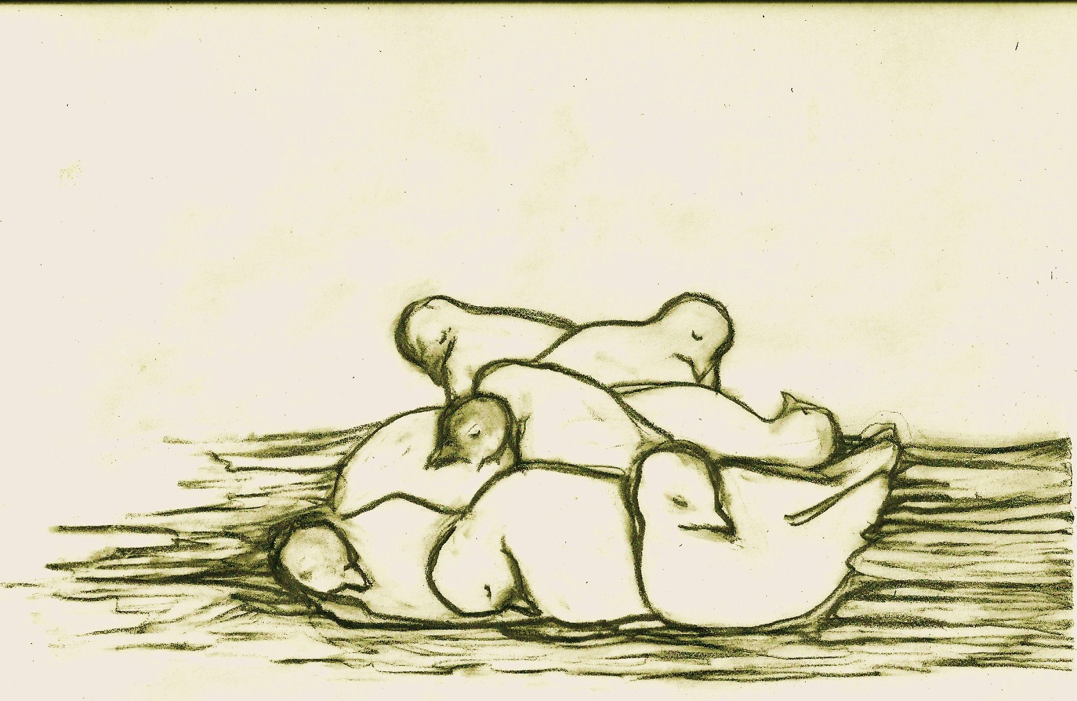 played badminton with a pretty cool 3-year old, rode an awesome scooter, held a crying-angry child as tightly as I could, noticed how dark he is around the eyes lately and then carried the same child to his father’s house, hurt back, went to work. Made doghouses out of old cereal boxes, explained to anxious mothers of toddlers that, really, it’s okay if she just wants to cut up the pink paper, she doesn’t have to actually make anything. Tore down crepe paper ribbons from exposed pipes (a fabulous ball of primary colors it was! I wish I had taken a picture.) poured a hundred pounds of sand into a bucket, drew a picture of eight young chickens, mended my sweater, swept no fewer than five times, did one load of wash, cleaned downstairs bathroom. It is implicit in all these things that the kids, my boy and girl, are ever-present even if absent…the necessity of clothing, milk, food, the exclamations over skate tricks in the main hall, the hasty wiping of faces, the endless hugs hello and goodbye, all day long going somewhere.