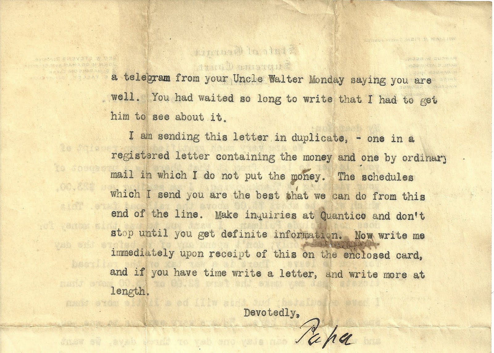(this was written while Marcus was in Jacksonville, and explains his plans to attend architecture school @ Auburn. He never made it. The scrawling handwriting appears drunken.