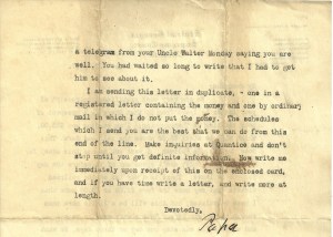 Note that my great-Grandfather, Clarence, “has gotten just a little nervous again” (The only reason my family ever lived in S. Georgia was because my great – Grandfather had to eventually leave Atlanta, due to his “nervousness.” The ‘nervous’ he felt on January 4th 1917 – when this letter was written – was response to his brother-in-law (Marcus) having fled the family home in Atlanta to travel to Jacksonville, Florida to work with a circus.