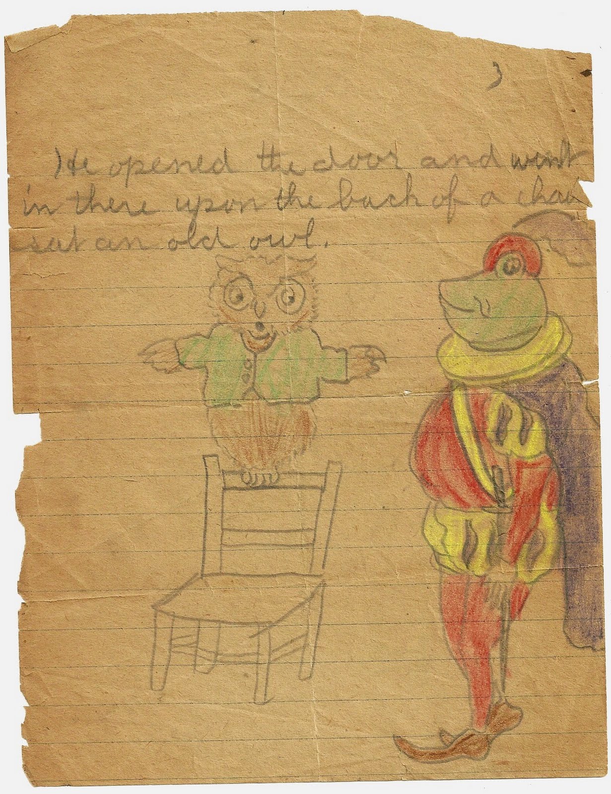 (…upon the back of a chair sat an old owl.)
