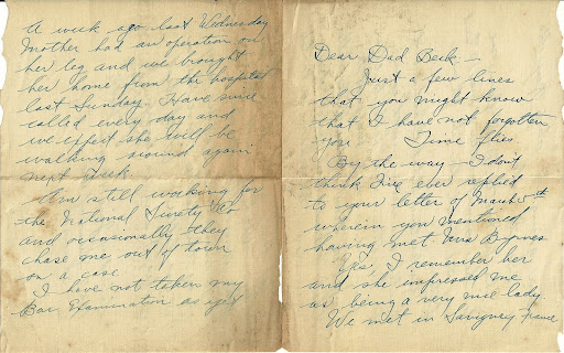 The letter explains to “Dad Beck” that the clear spoken Noble is preparing for his Bar Examinations. There is no mention of the prodigal Marcus. He must have “died” by then.
