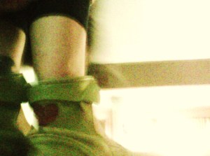 Other people would wander up and consider the shoes I was considering, bright green, with elvish ankles.