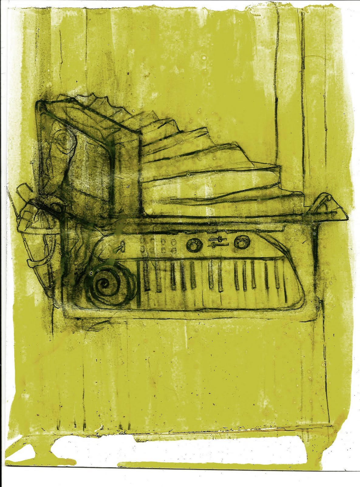 Or this, the telephone pole across the street, briefly strewn with human hearts and the Virgin Mary, swiftly turned into The Accordion to god.