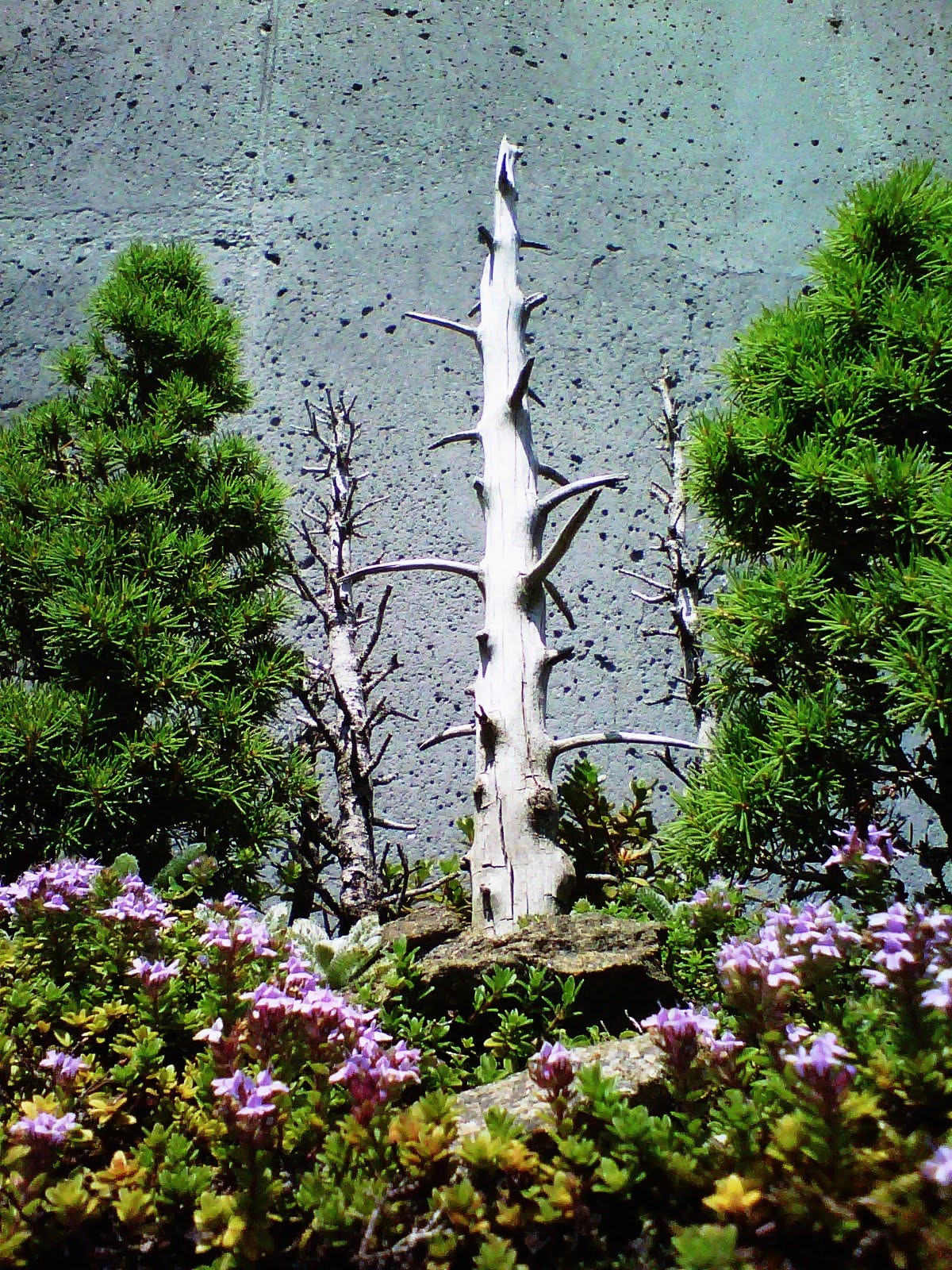 In the end, it was orange-y crackers and a large five-lined skink darting into the five-leaved akebia that provided the distraction that un-jammed our forward momentum. We saw the bonsai. We looked at them for a few minutes. The boy said his head hurt, his stomach hurt. It was hot. We went home.
