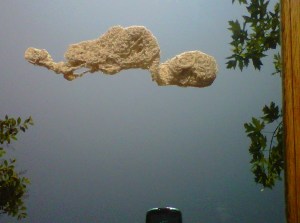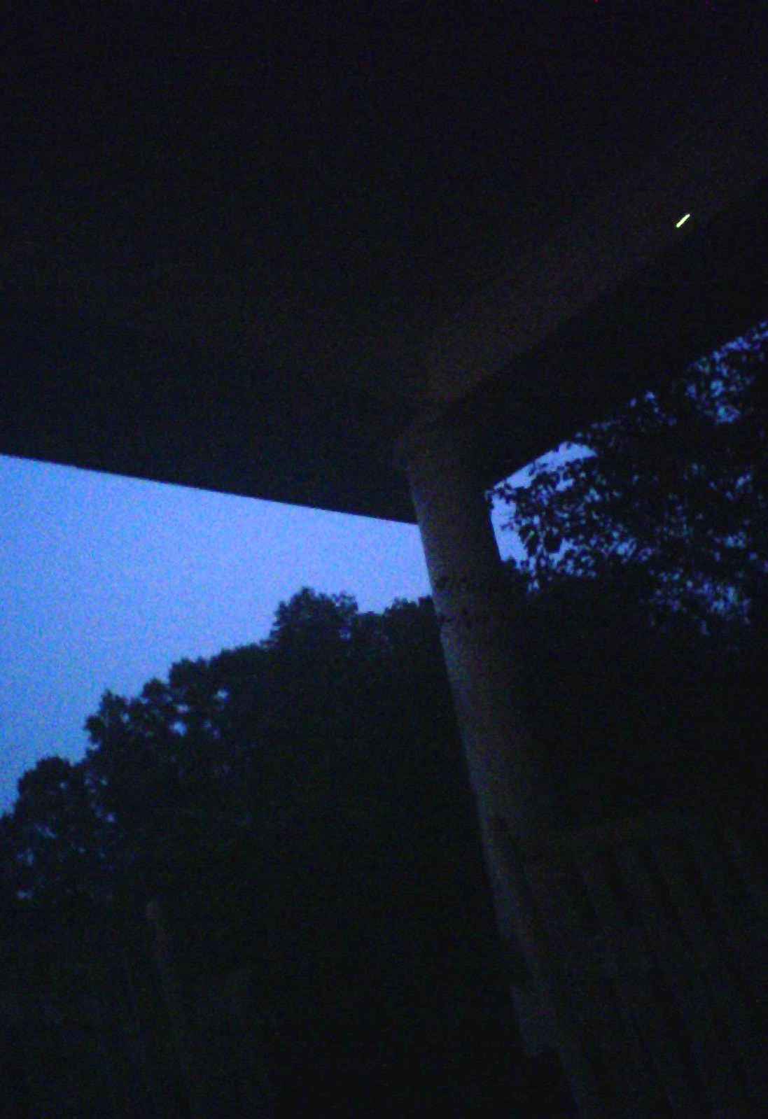 (Thinking now of Baldessari’s mid-air square of balls but at the time I was totally entranced with the fireflies. They teased me it seemed, responding to clicking of the camera and the bright light of the porch by flying close and hovering, their abdomens lit dull and stubborn. I