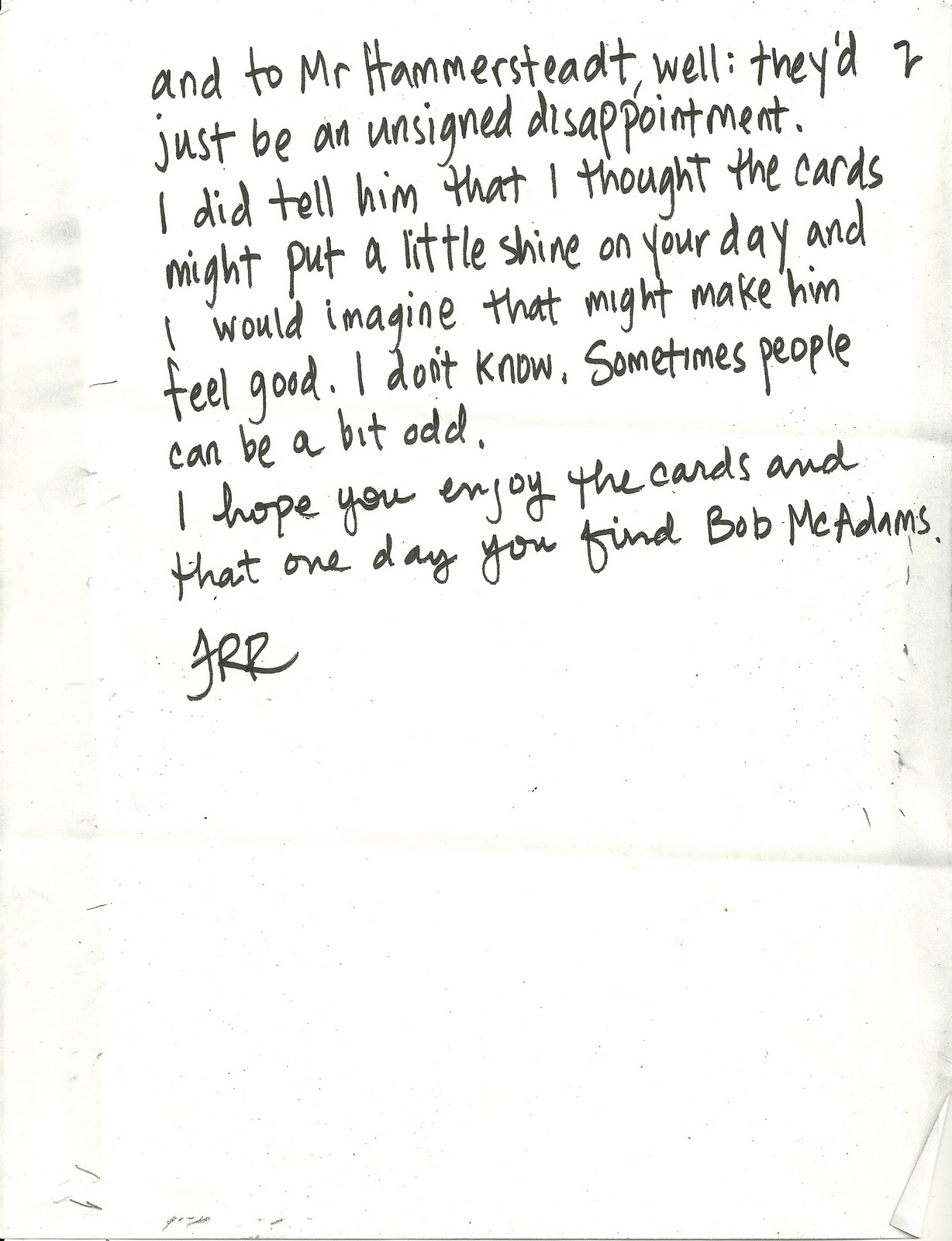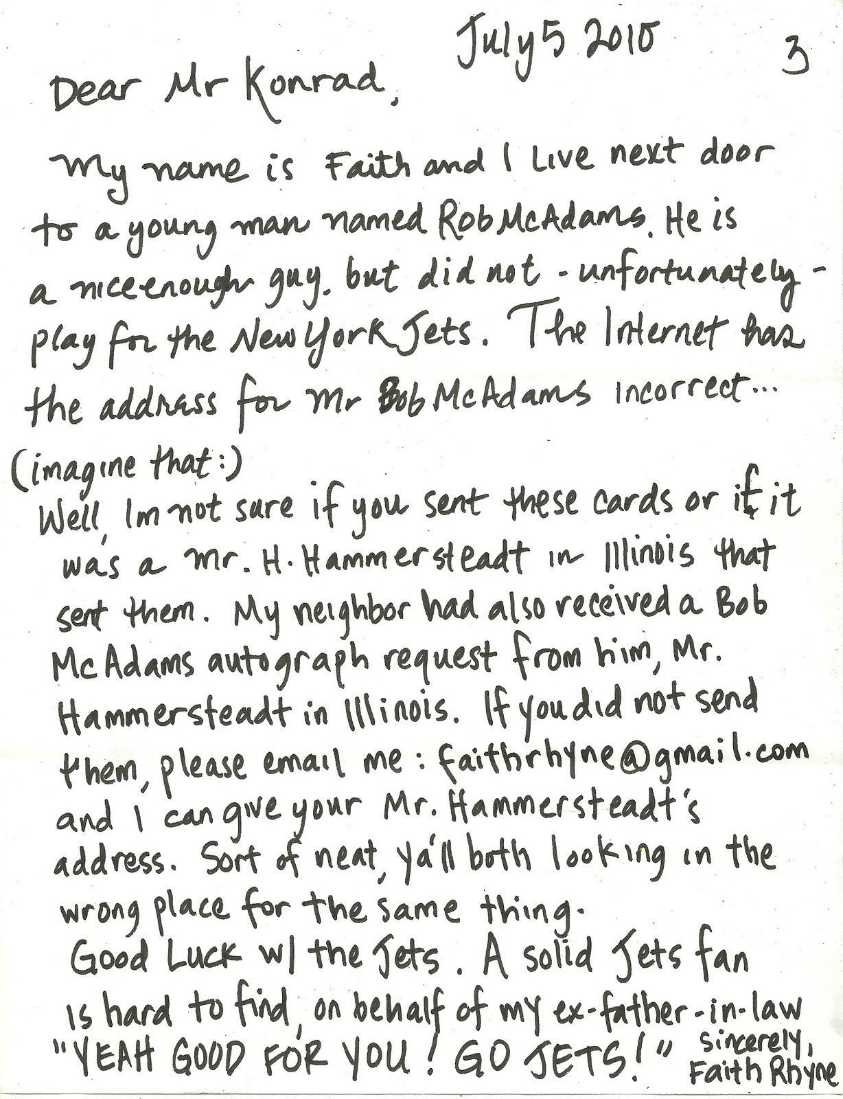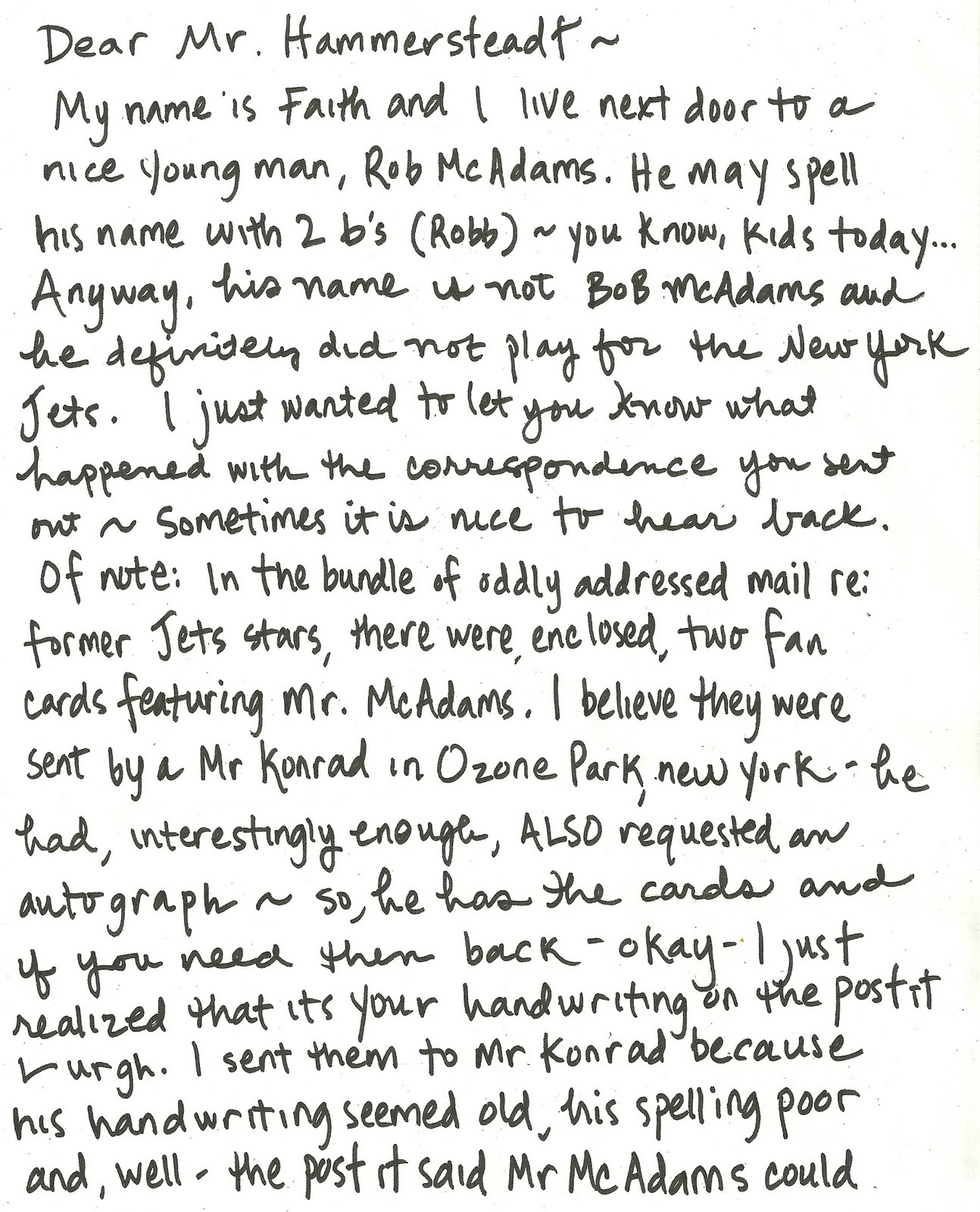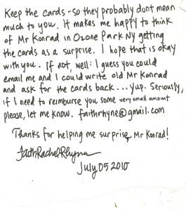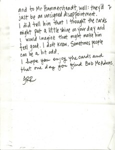 Well, this guy has a huge fan in Ozone Park, New York. And one in Evanston, Illinois – they had both written wanting a signature. My neighbors mentioned the mix-up and showed me the letters. “I don’t know what to do with ’em.”