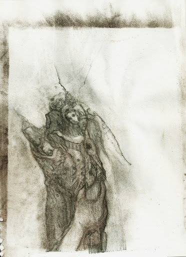 I noticed – as I was drawing that impossible drawing yesterday that the graphite clung to some places on the paper more readily than others. And that as I did my light erasure, the symbols showed up…I didn’t draw them. I can’t stand cheesy religious-symbolic iconography in art. It’s because the person who tattooed my back used to be a little hung up on such things. If you look closely at the drawings this person (RIP) – you will find the symbols there, too.