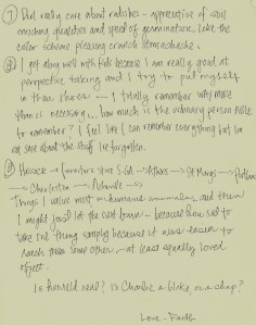 3. What is your furniture like? Where is it from? How many times have you moved it? Which items, in your house, are the most important things to you? Of these, they have to be able to fit in your hands or be carried by you. (I remember how strong you are, so I won’t bat an eye if it’s a piano).