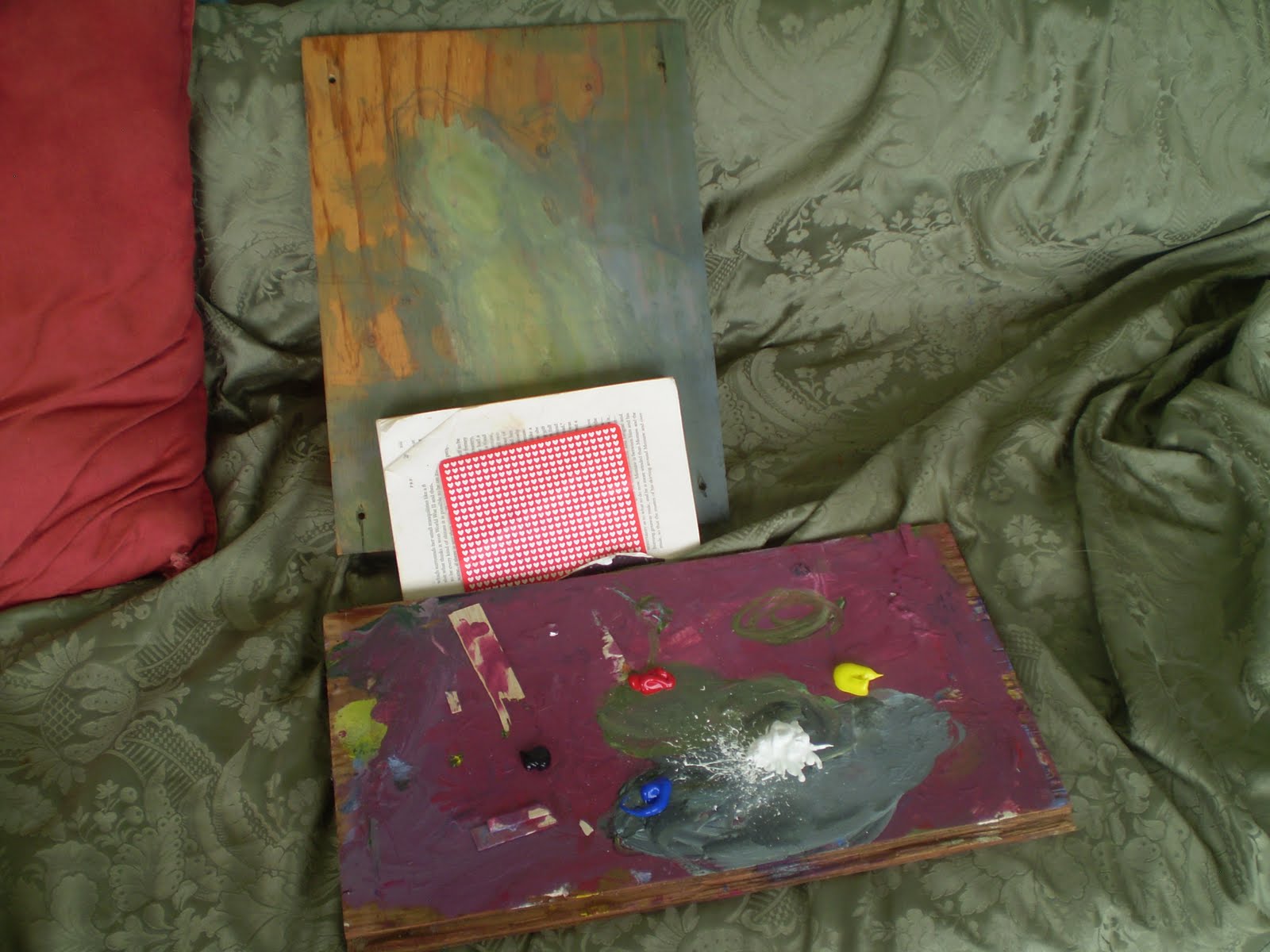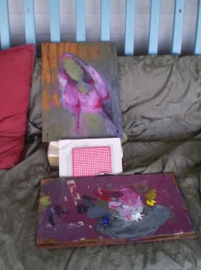 I have begun wasting paint. I love painting. I use acrylics for the flexibility of motility and opacity that are somewhat limited with oils and watercolors. I mix my own colors, for the most part – from primaries and b+w. It is so much fun to see the picture emerge from the layers of color and idea.