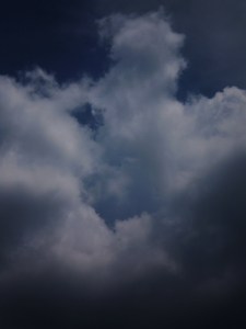 The swasti-cloud did catch me off guard. I almost didn’t even see it – dwarfed as it was by the pupae-puff-bundle beside it. Too many intersecting right angles for me to be entirely comfortable with, presented as they are in the big, bland, mindless sky. I just don’t – knowing what I know about clouds and their formations – see how it is possible.