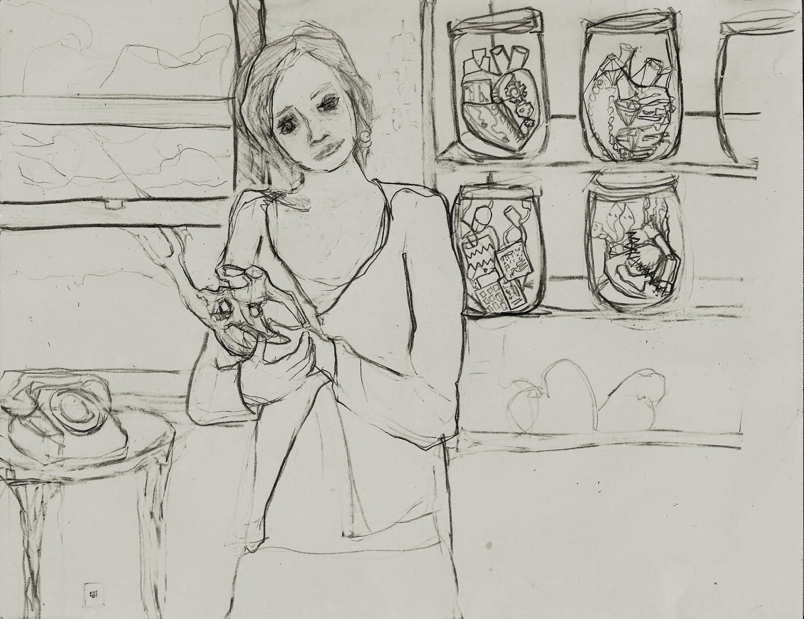 I did this drawing in Charleston, and it helped me to realize how important drawing has become to me. It is a bit of a redux on my back fence and a painting that used to hang over my great-grandmother’s couch…a young girl napping at the base of a tree, with some Alpine-ish village in the distance. The painting, in objective content, was fairly innocuous. However, I always found it to be a bit ominous. Why was the girl alone? Sleeping?