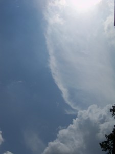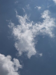 Well, I don’t even talk about the clouds aside from the writing I do here. I have been, when I feel like it, telling the drunk men on my street to look up, and – man -I have got to tell you, the most-beat down stumblers can spot grace when they see it. They walk up to the car, suspicious and hard-eyed and by the time we part ways, they are smiling the smile of the bewildered.
