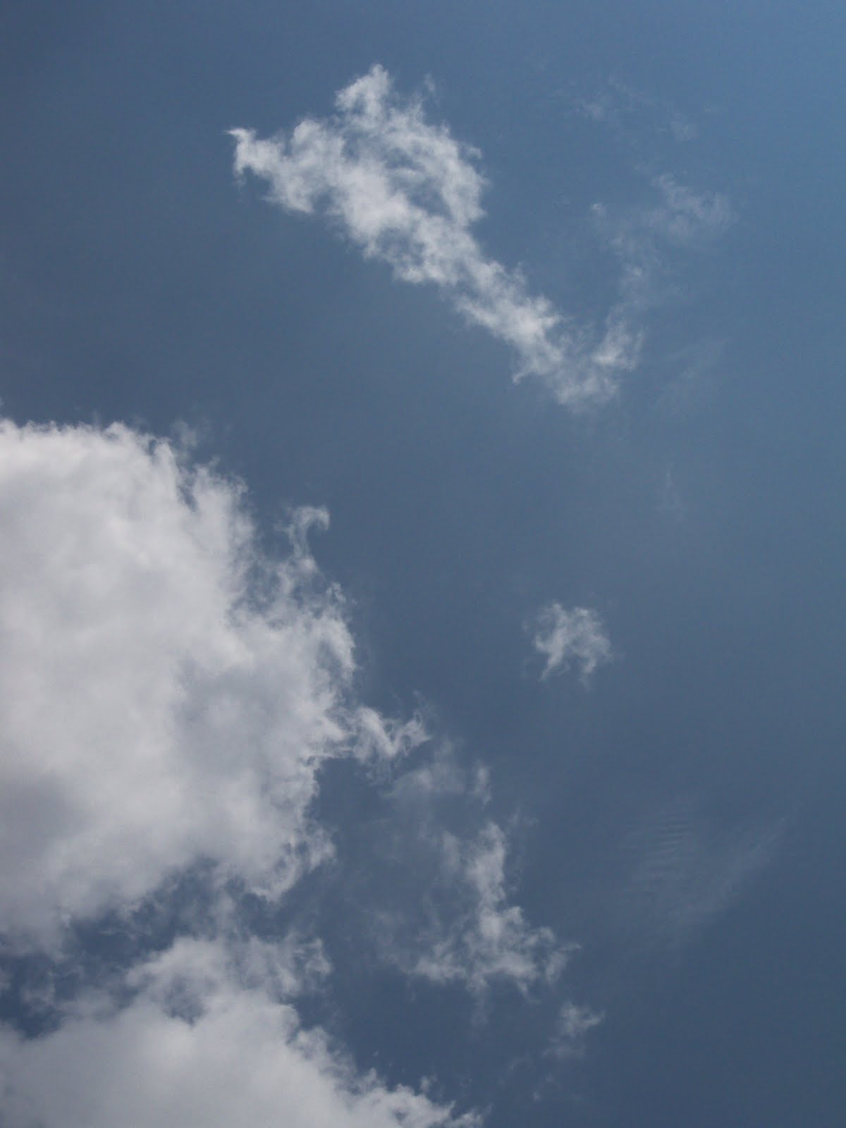 Well, I don’t even talk about the clouds aside from the writing I do here. I have been, when I feel like it, telling the drunk men on my street to look up, and – man -I have got to tell you, the most-beat down stumblers can spot grace when they see it. They walk up to the car, suspicious and hard-eyed and by the time we part ways, they are smiling the smile of the bewildered.