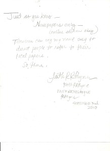 Thus, Mr. Beck – if you would prefer to write me a letter…well, that’d be fine. I am still curious as to whether or not we are related. Thanks for your time. I hope you have a nice morning.
