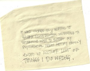 …and back in town, a grocery store parking lot, a long road, a kiosk where color copies cost 3 bucks apiece, a meeting, a gathering I was not to attend, a grandmother with my children clinging to her cart, reaching up to pull yellow plastic shovels off of a top shelf…a lot of sad miscellany, really.