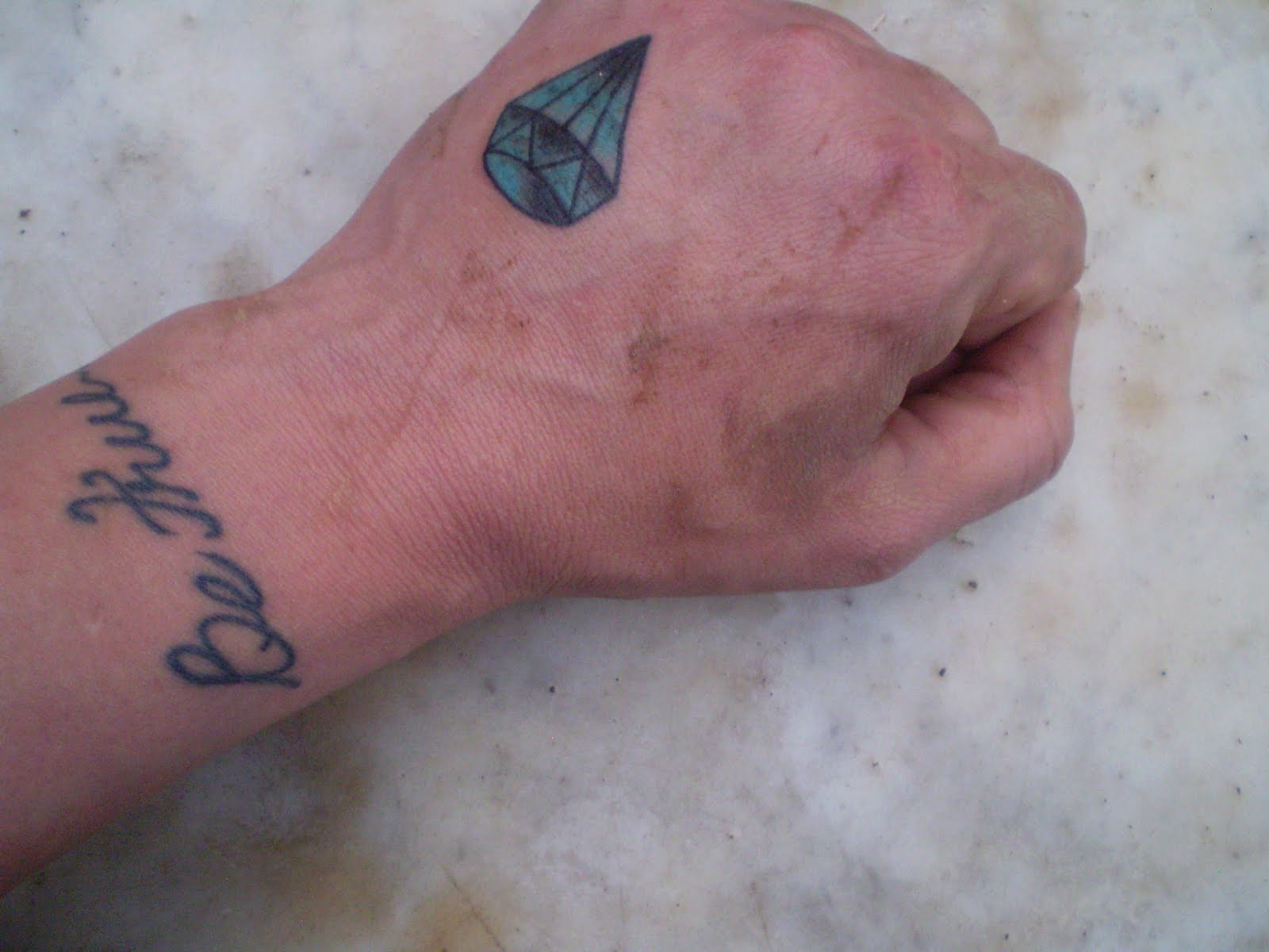 I have always noticed the sky, but it wasn’t until the morning after I buried my best friend (a dog) that it seemed to nag me. I got this blue diamond tattoo that day. It didn’t heal for almost a month, I thought that all the ink had ‘fallen out’ – it had all but disappeared under the wound…and then suddenly, within a day, it did heal.