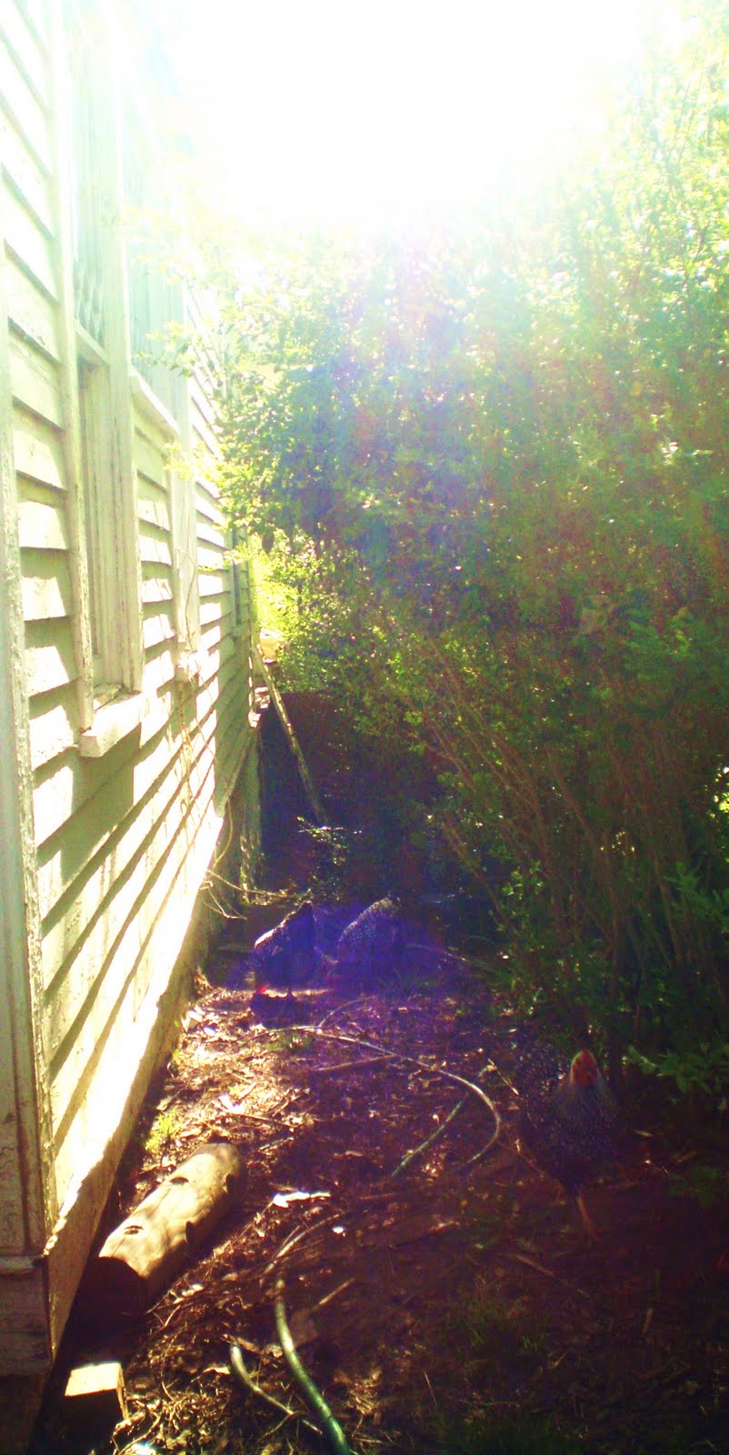 But, I would eventually like to have actual old friends that could come visit – play music, laugh, etc. I do still wish my house were more like a well-tended storybook cuckoo clock, all reds and blues and green, wood brown. Hedges trimmed and porch well swept. Biscuits in oven. It is sort of like that, but the edges are mighty rough. The hedge tall and straggly. The chickens ‘at large.’