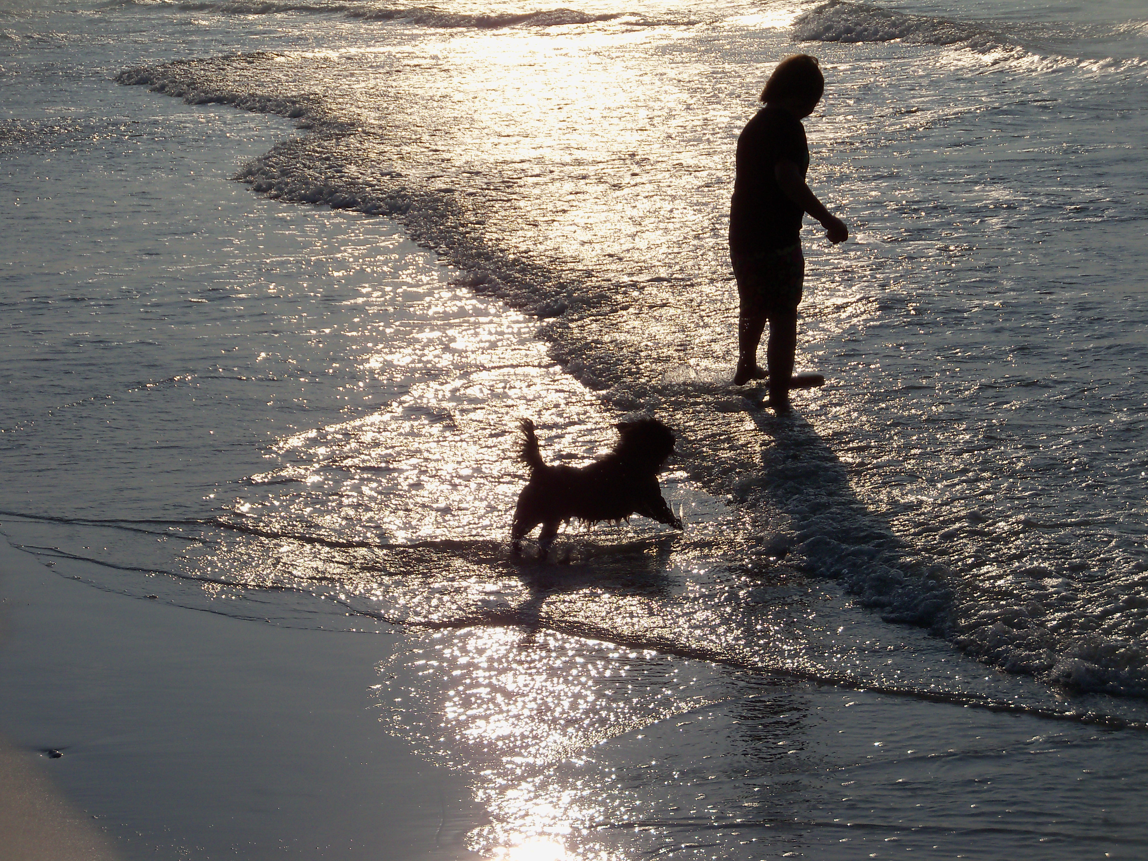 I wish that I could talk. I always cock my head to show that I am listening. I smile a lot, because I am happy. She throws the ball out into the waves for me, even though I am old. She believes that I can do it. She claps for me when I run back to her.”