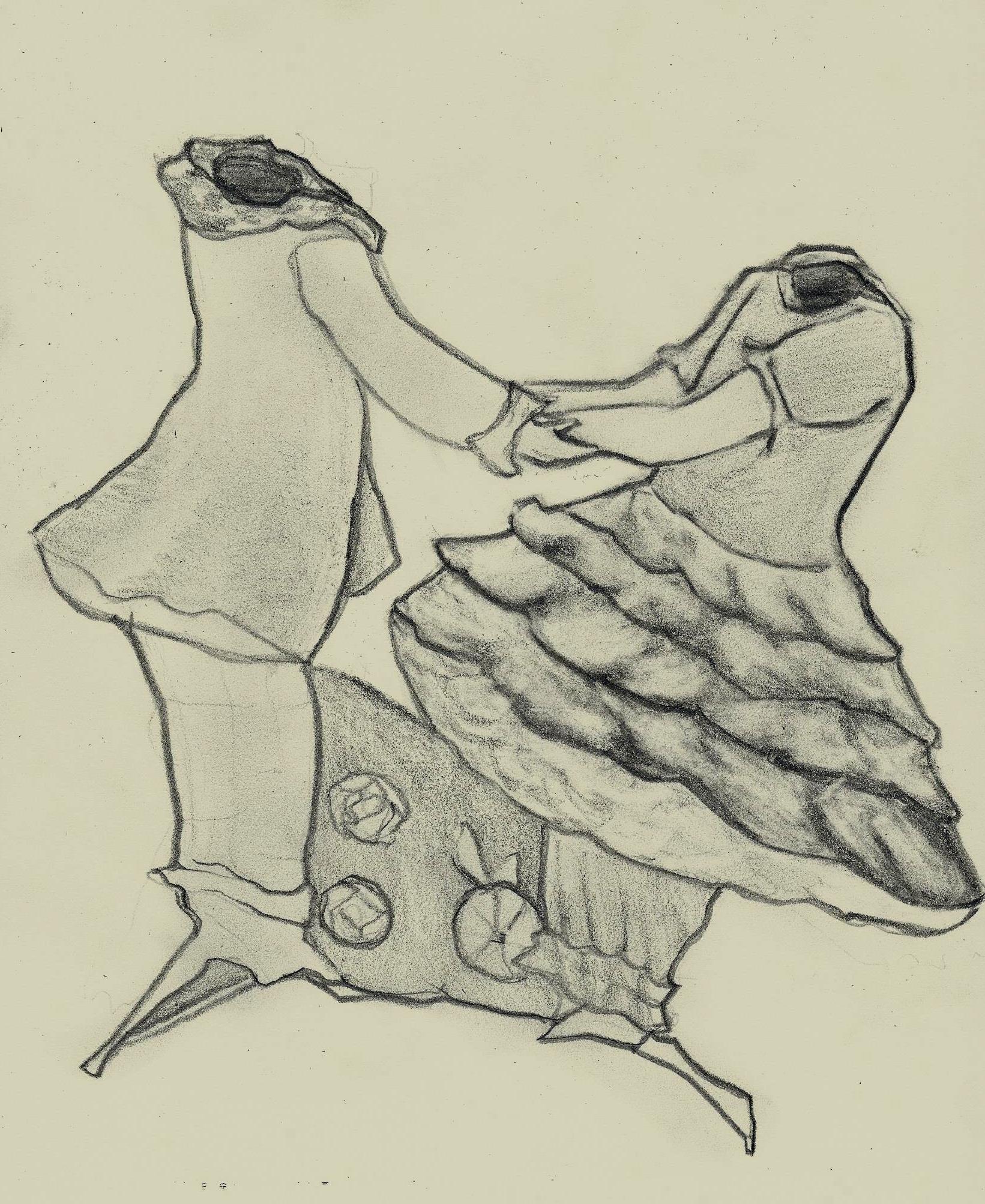 The garbage was thrown into a big ditch that ran behind the workshed that was set some ways off from the white house. Anything they needed to throw away was either burnt or tossed into the ditch. Even when I was growing up, that little dip in the land was filled with the remnants of all sorts of garbage, plastics and glass and pieces of broken furniture, the twisted frame of an aluminum lawn chair. I don’t know if The Dancers came from those near forgotten piles of trash that the tides must have licked at when the moon was full and the waters were high.