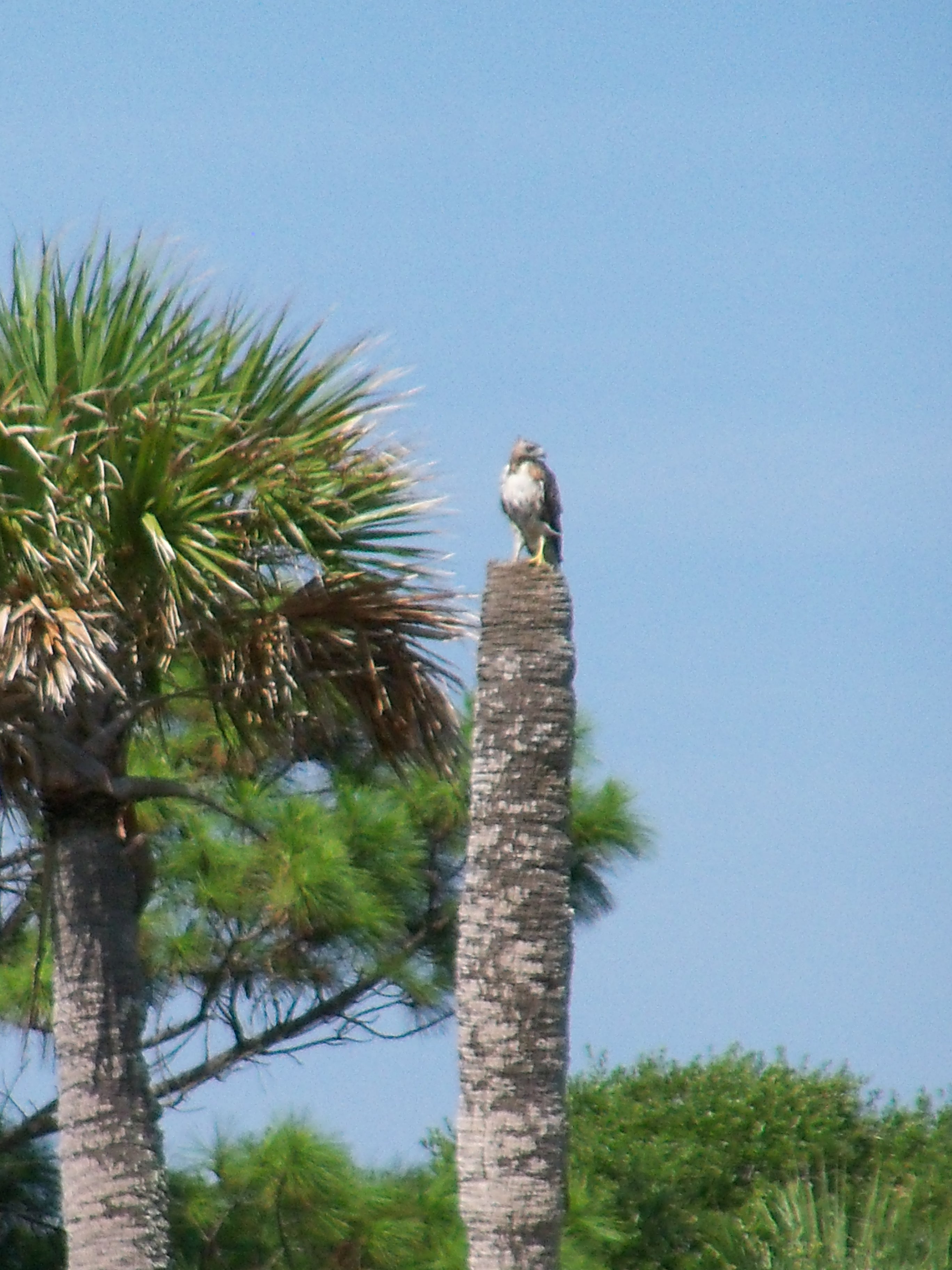 A hawk on the top of a beheaded palm, and someone’s homemade stencil.