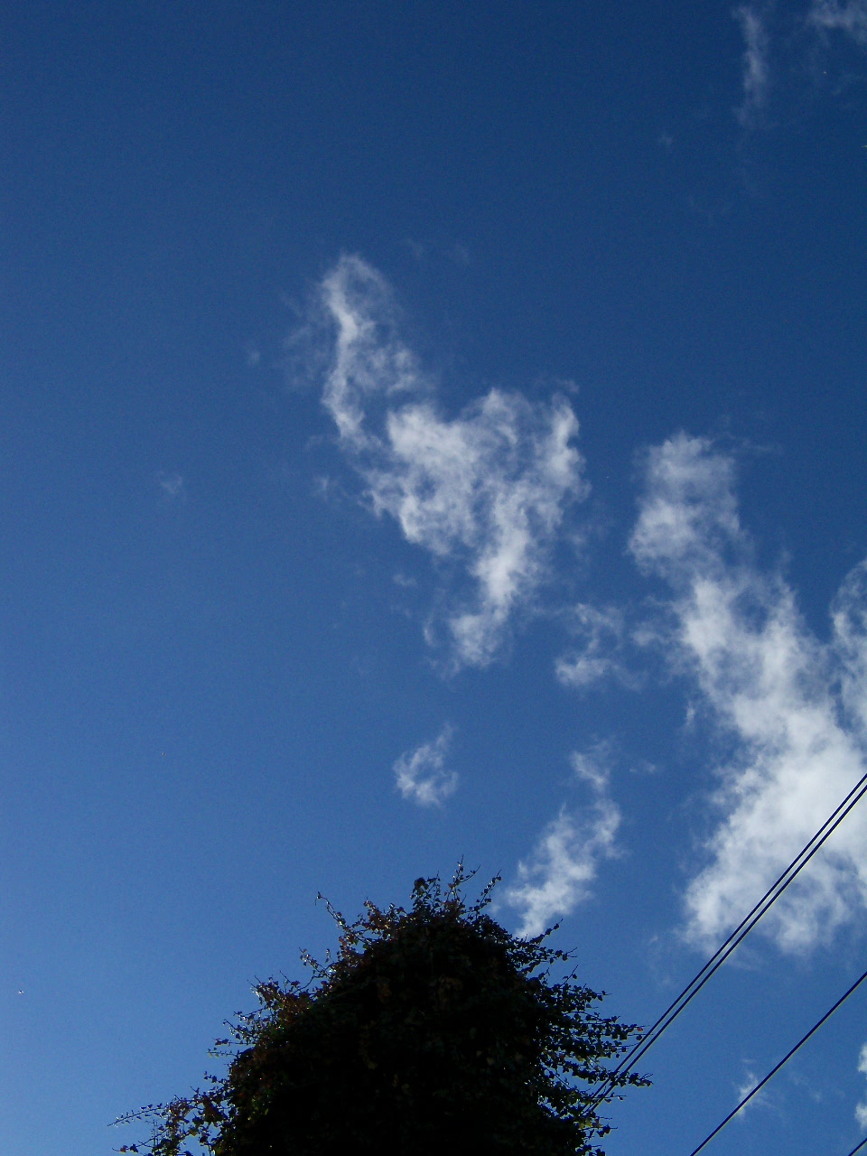 I took these pictures of clouds on Friday afternoon, in my neighborhood, while I was walking my dogs and talking with a friend on the phone. The dogs were patient and my friend had no idea that I had stopped walking and was standing on the sidewalk, taking pictures of clouds.