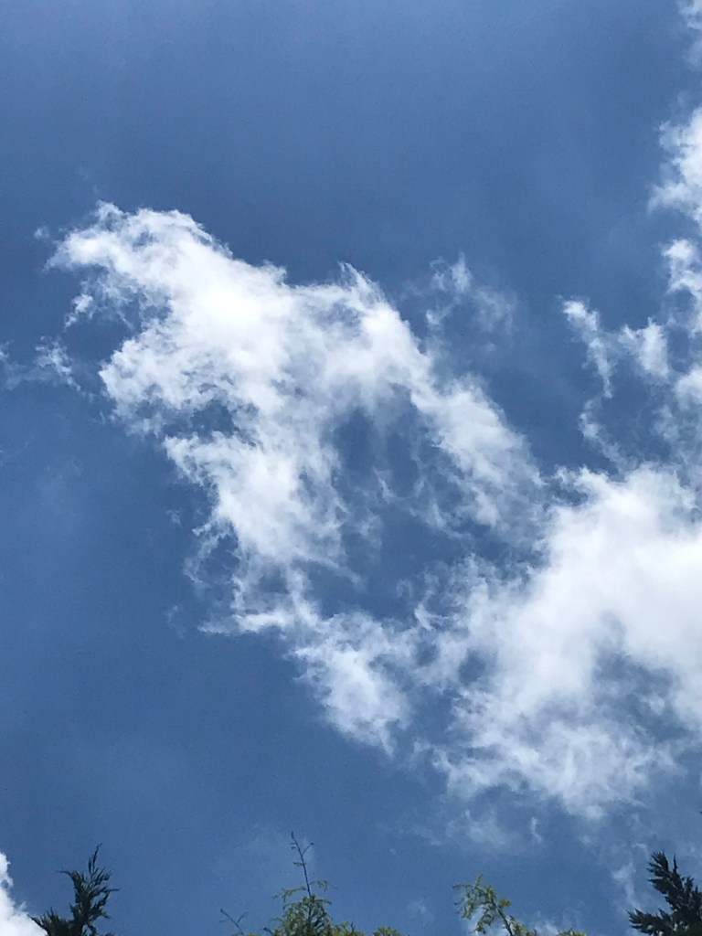 That period of time has never really entirely stopped, since although there were spans of weeks and maybe even months when my thinking about God and clouds became very distant, something I almost forgot and then remembered, but didn’t hold tight to, didn’t give time to, except to sometimes notice a cloud that looked like a triangle, that looked like a letter, a bird in flight, a fox’s keen eyes, and to notice – sometimes – the feeling of a greater set of workings in my life, a peculiar sort of resonance in the crossing paths with strangers or the songs playing on the radio.