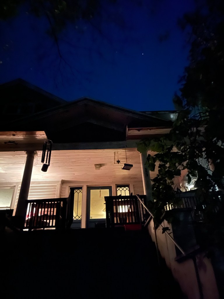 She has fed dogs and cats, swept floors, brushed her hair for a very long time, rebraided it. Watched the sky turn lapis azul, a morning twilight with Orion having slid all the way across the southern sky, shining bright through the silhouettes of trees that the small barks from young dogs cut through, bounding voices toward the figures moving along the street, through the dark.